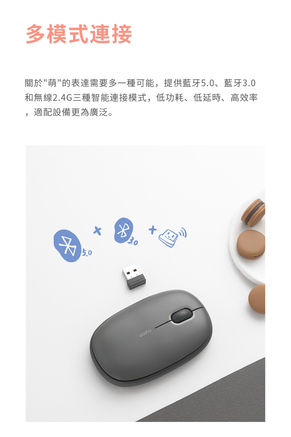 【繽紛系多模無線靜音滑鼠 】 *藍牙3.0、5.0和2.4G三模式 *多設備適配智慧切換 *1300 DPI精度的尋跡引擎 *長達12個月電池使用壽命 *軟彈膠圈柔軟親膚 *溫潤造型 磁吸式上蓋