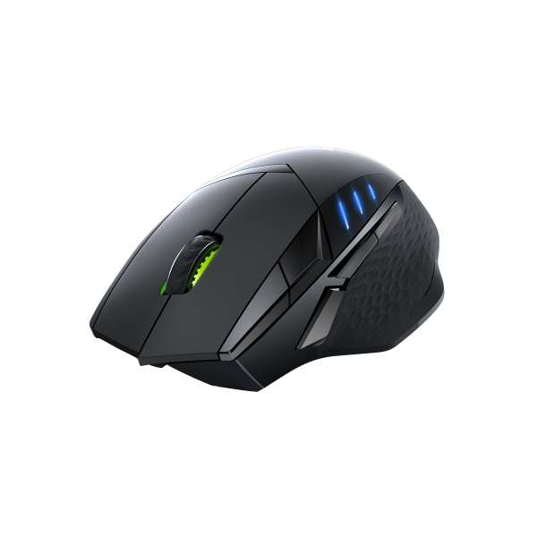 有線和2.4 GHz無線雙模式 人體工學設計搭配 9 個可編程的按鈕 板載記憶體,可直接儲存及進行遊戲 可調式即時 DPI 按鈕 精準瀏覽 1600萬色呼吸燈 可重複充電環保鋰電池