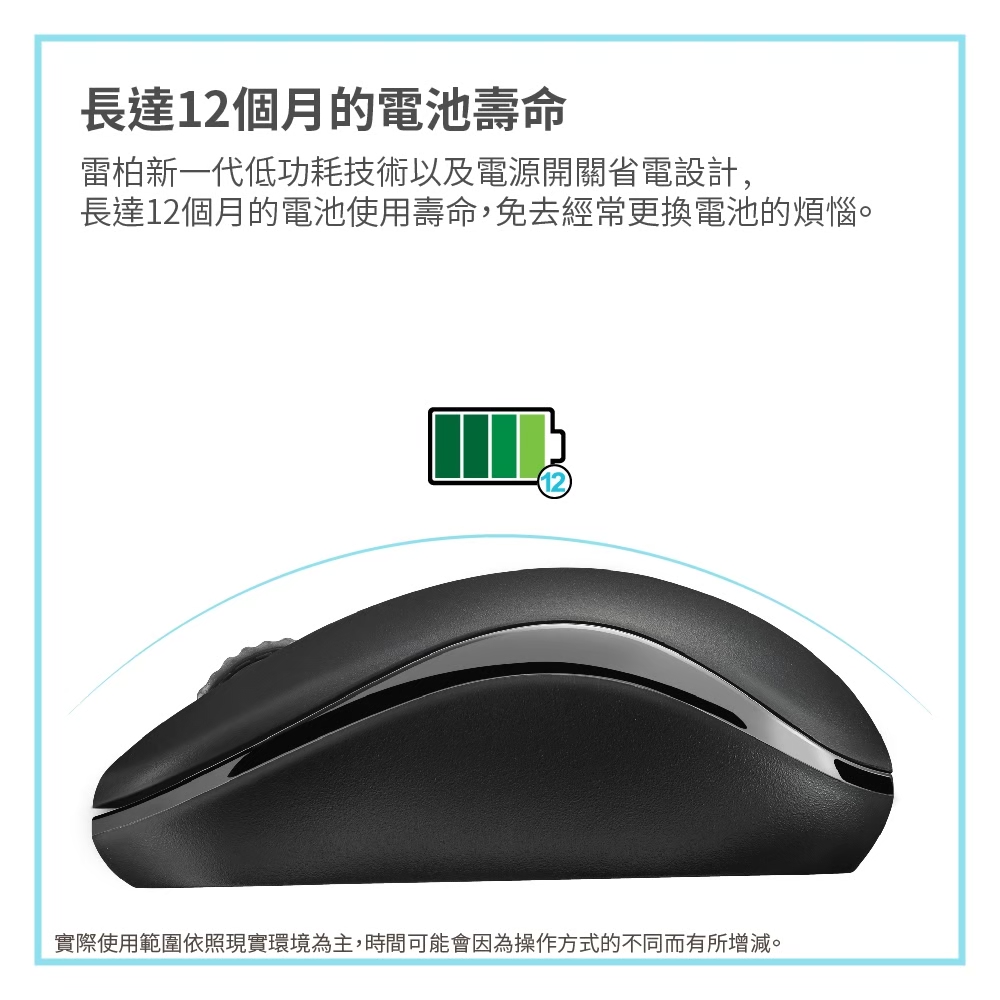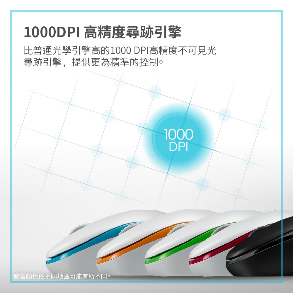 2.4GHz無線自由 12個月電池使用壽命 1000 DPI精度的尋跡引擎