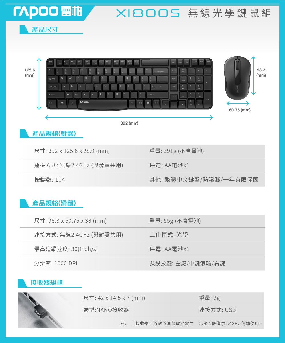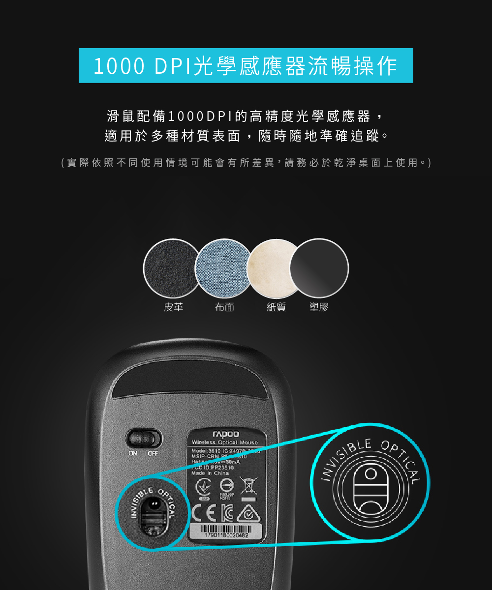 多媒體控制 電池使用壽命長 1000 DPI精度的尋跡引擎 即插即忘的接收器