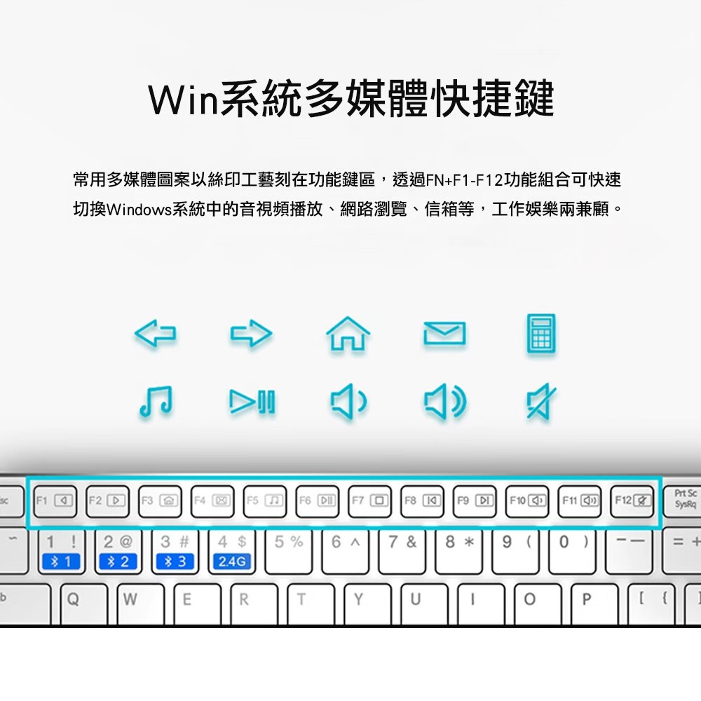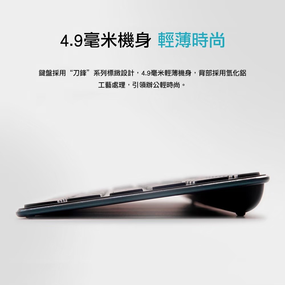 多設備適配智能切換 藍牙3.0、4.0和2.4 GHz三模式 1300 DPI精度的尋跡引擎 4.9mm纖薄金屬機身 懸浮巧克力式按鍵,手感舒適