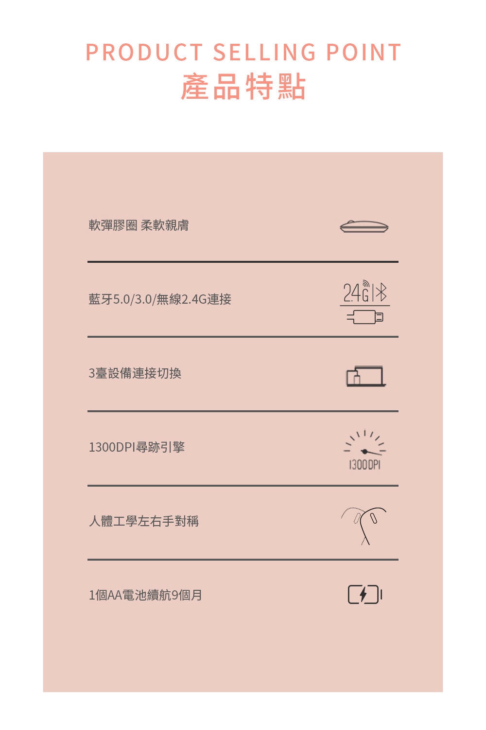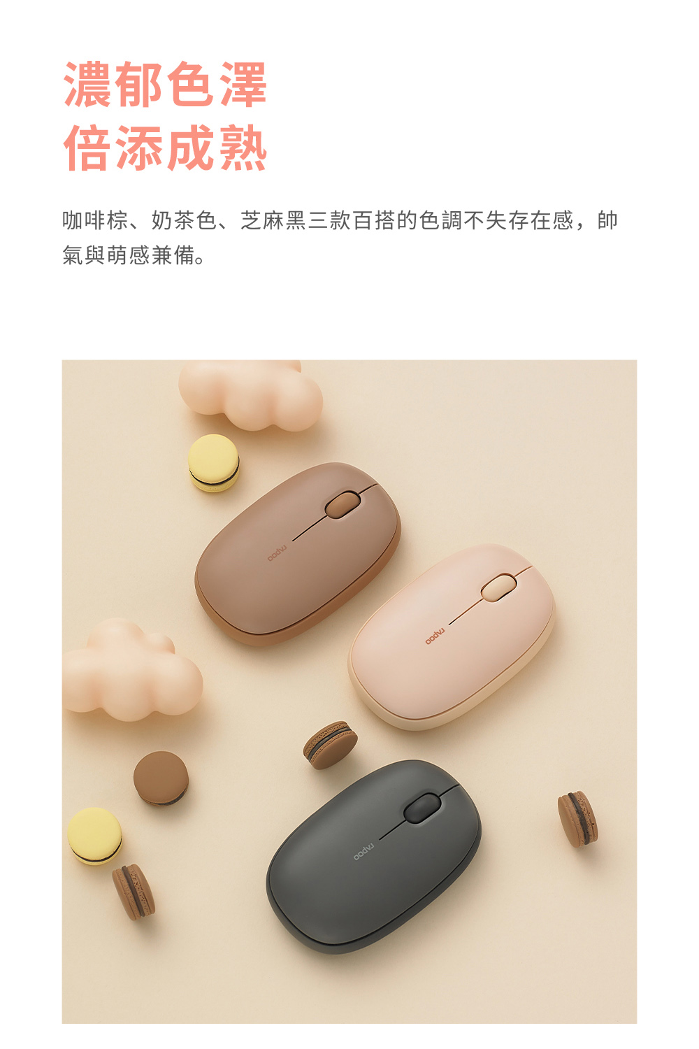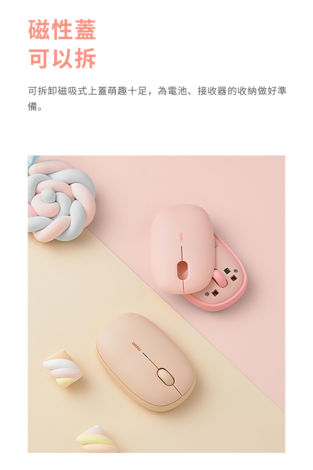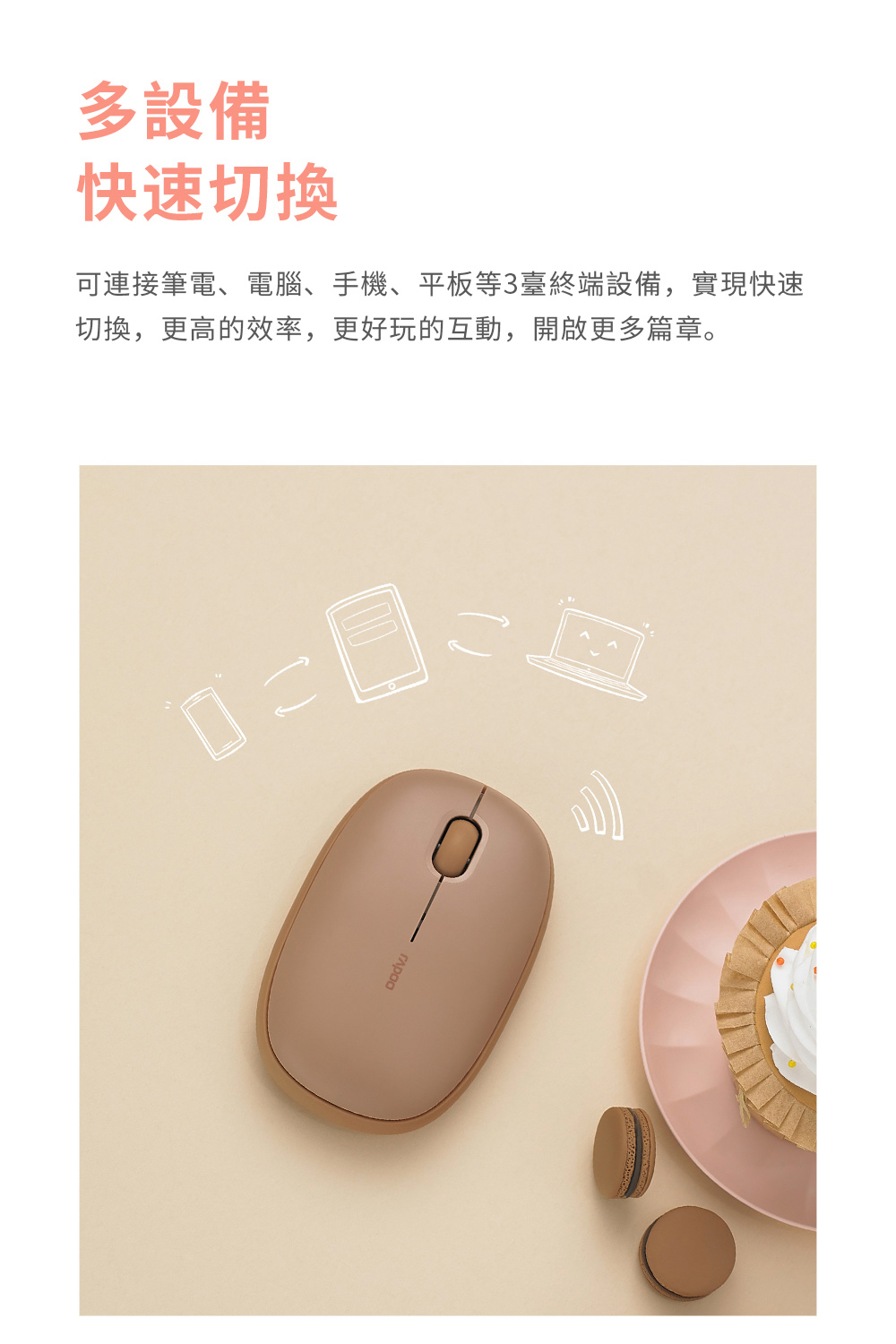 【繽紛系多模無線靜音滑鼠 】 *藍牙3.0、5.0和2.4G三模式 *多設備適配智慧切換 *1300 DPI精度的尋跡引擎 *長達12個月電池使用壽命 *軟彈膠圈柔軟親膚 *溫潤造型 磁吸式上蓋