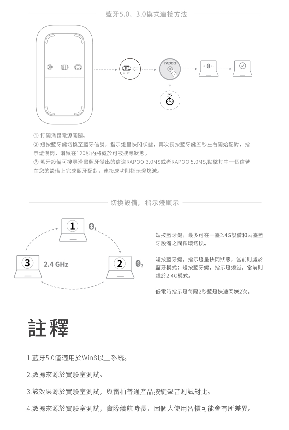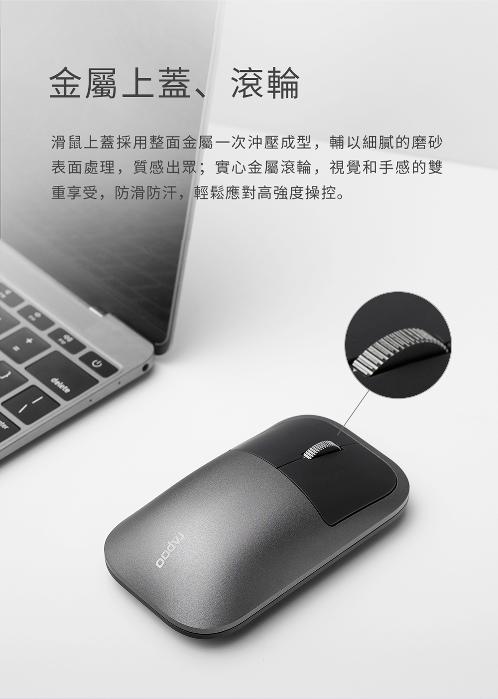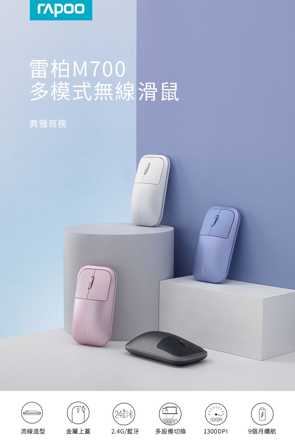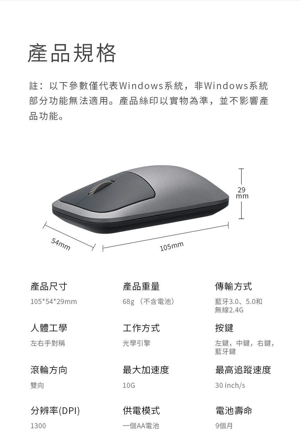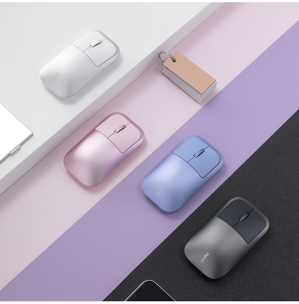 【繽紛系多模金屬質感無線靜音滑鼠 】 *藍牙3.0、5.0和2.4G三模式 *多設備適配智慧切換 *1300 DPI精度的尋跡引擎 *長達12個月電池使用壽命 * 流行造型金屬質感上蓋設計高雅 * 舒適掌控的人體工學設計背部曲線 *貼心靜音微動